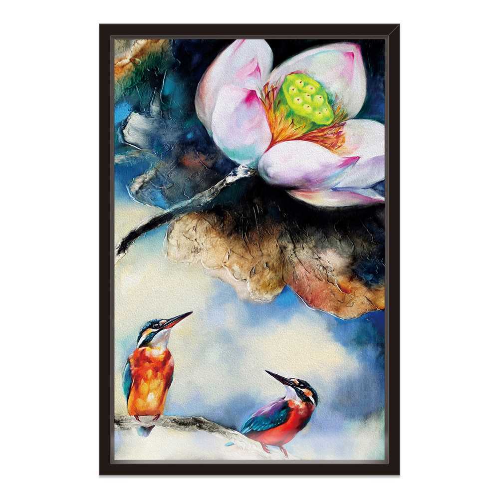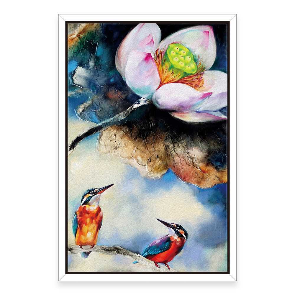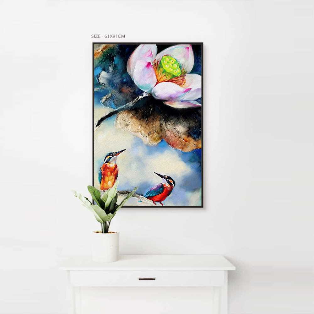 Lotus With Kingfishers Art Painting Home Decoration Canvas