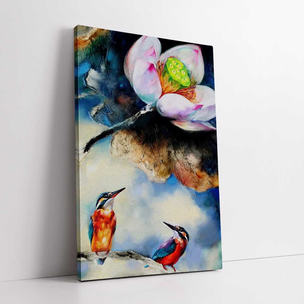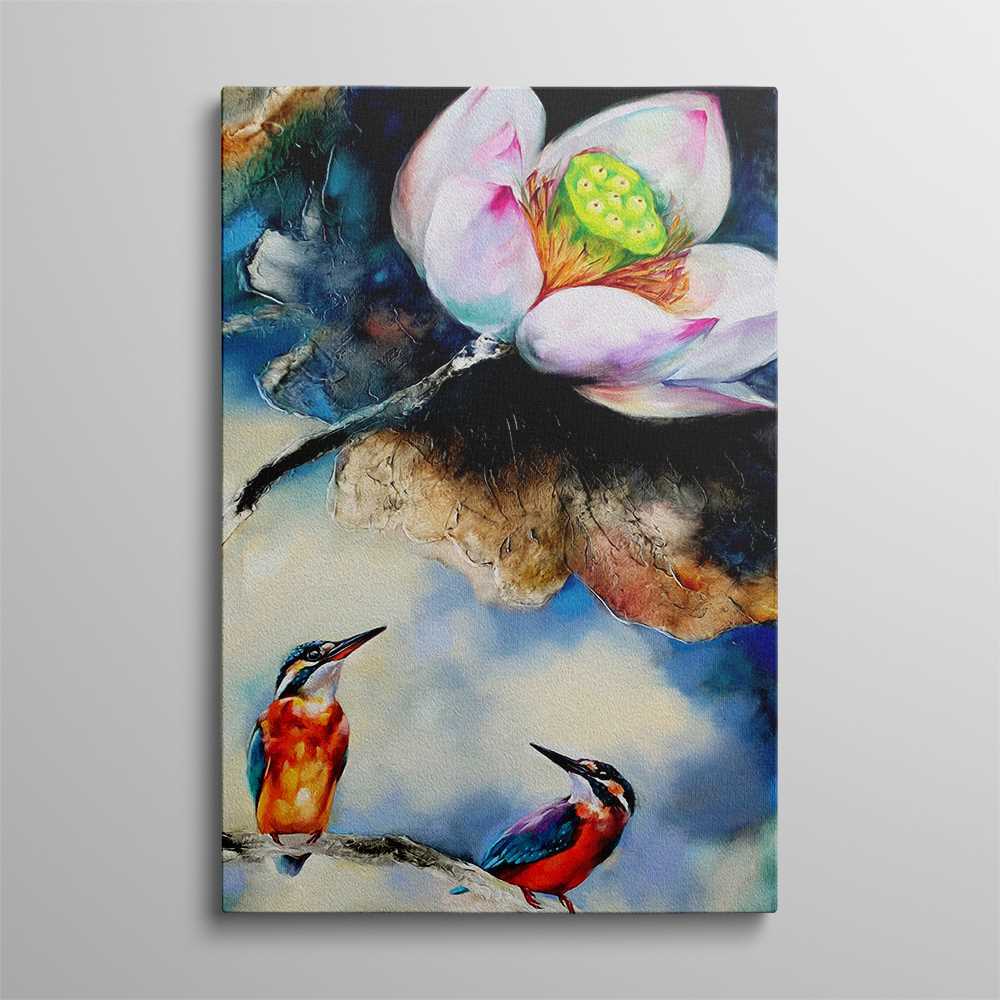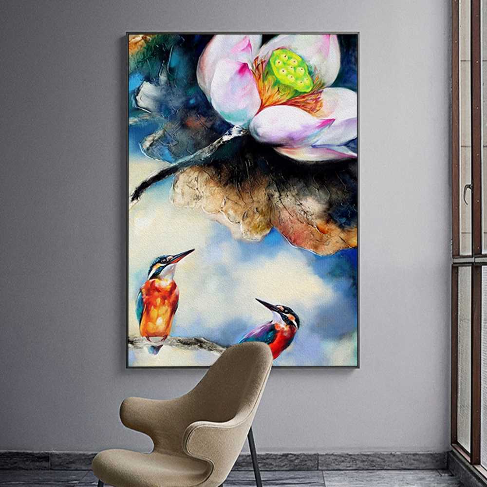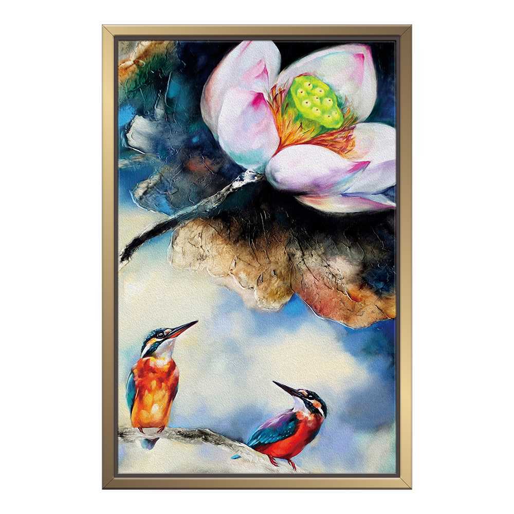 Lotus With Kingfishers Art Painting Home Decoration Canvas