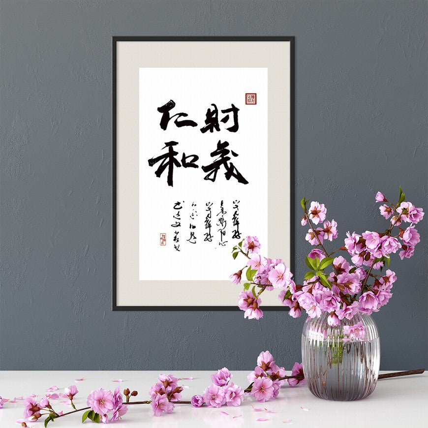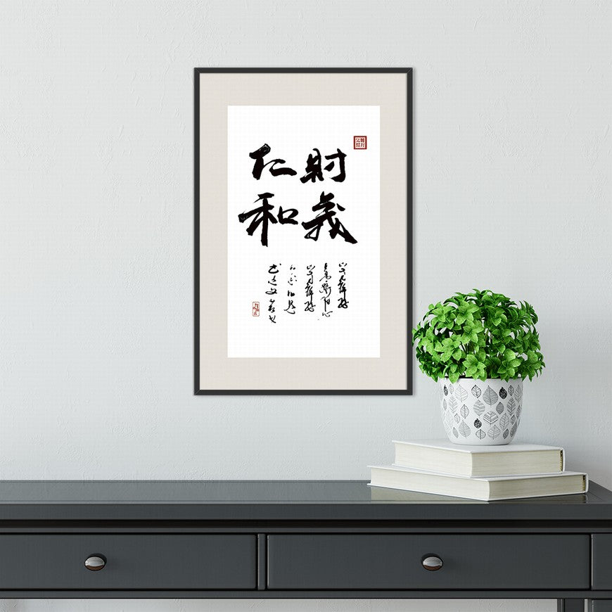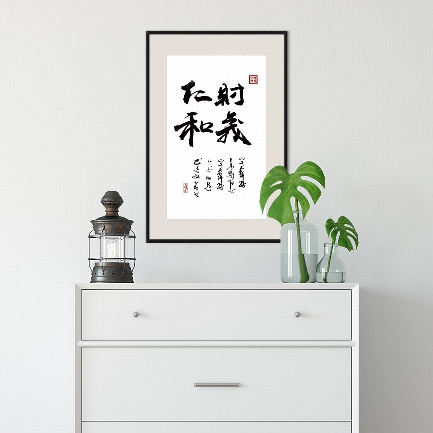 Wealth, Righteousness, Benevolence, Harmony Chinese calligraphy art