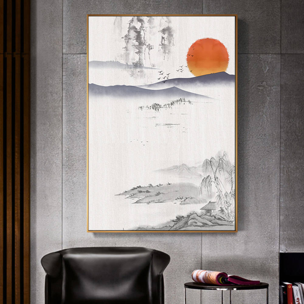 Chinese Style: Sunset, Geese, Willow Artwork Scene