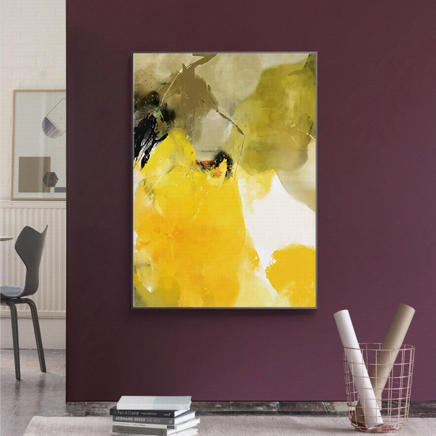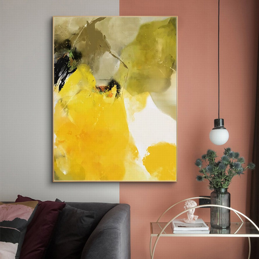 Yellow and Olive Splash of Colors Abstract Painting